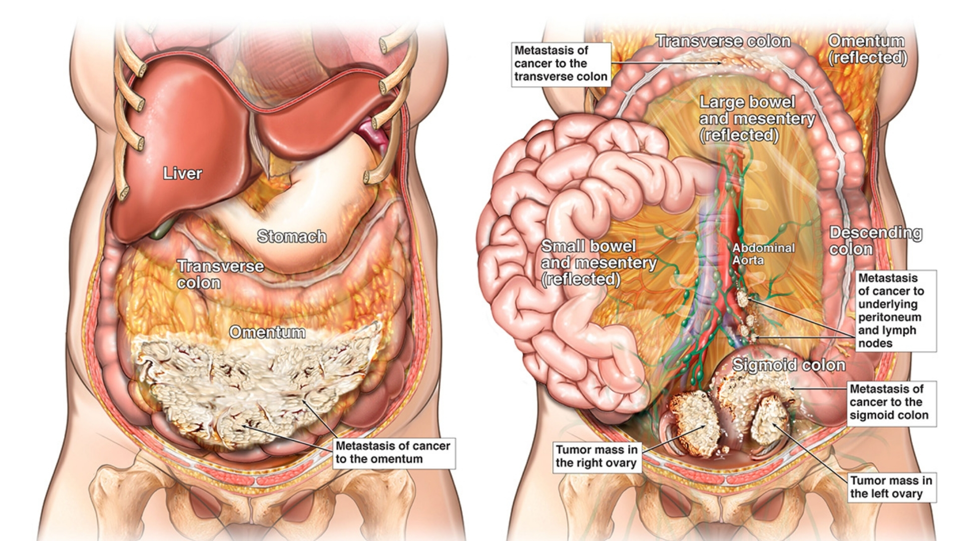 - 全面的細胞復原手術加上積極的化療方案是標準的治療方法。